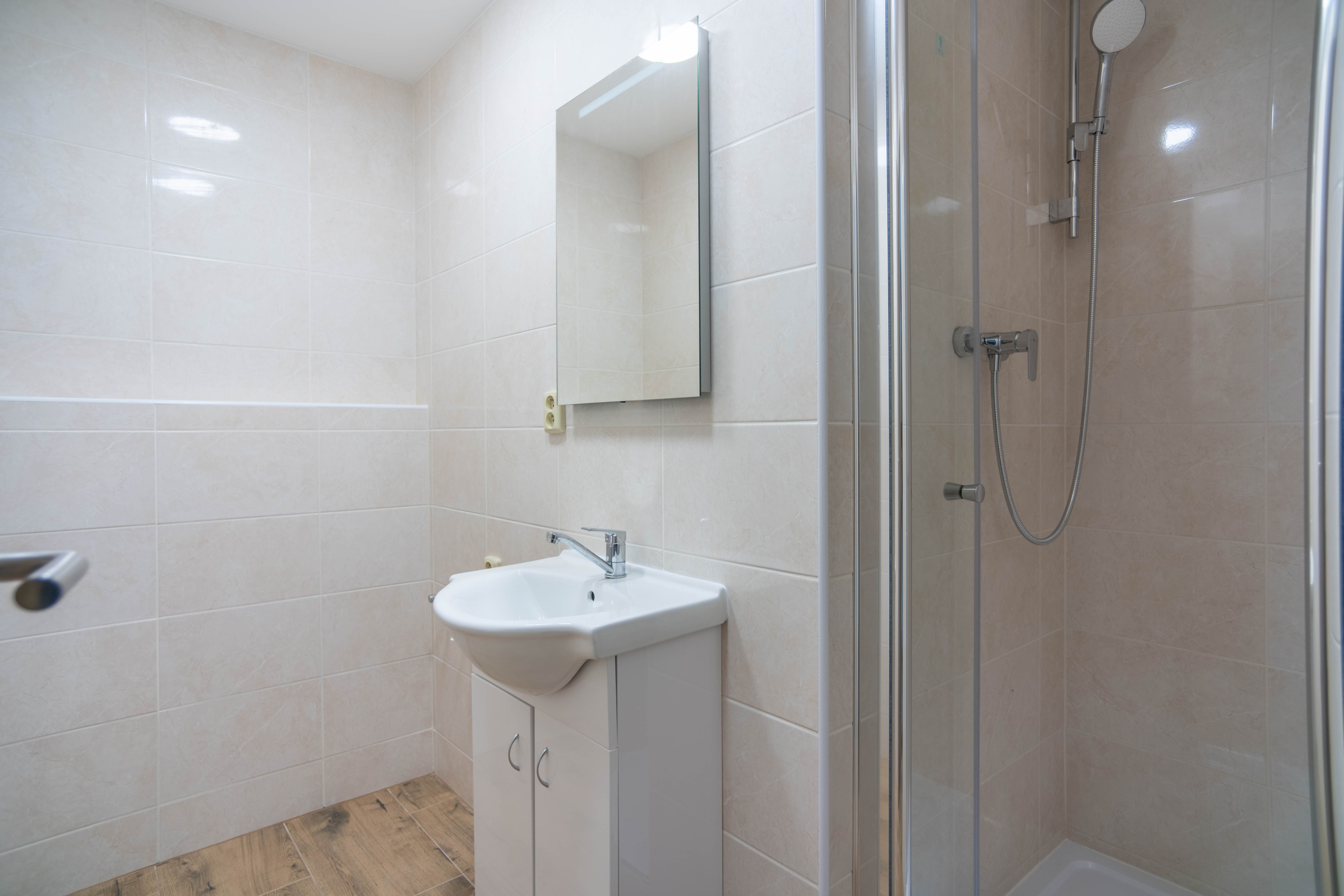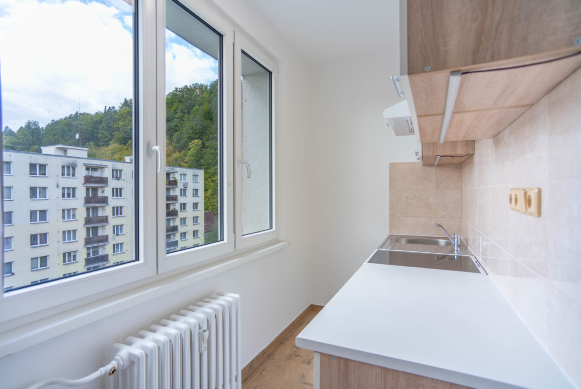 Byt prošel rekonstrukcí umakartového jádra, které bylo nově vyzděno. V koupelně najdete sprchový kout, místo na pračku i sušičku a samostatné WC.