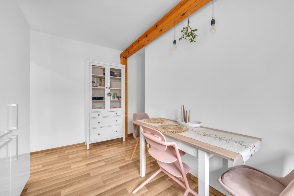 Byt prošel kompletní rekonstrukcí v roce 2013 – nové rozvody elektřiny, podlahy i koupelna. Okna jsou plastová v celém domě. Dispozice je praktická a zároveň flexibilní. Třetí pokoj byl vybudován v roce 2021 ze sádrokartonu a lze jej bez větších zásahů odstranit, pokud by někdo preferoval vzdušnější dispozici.