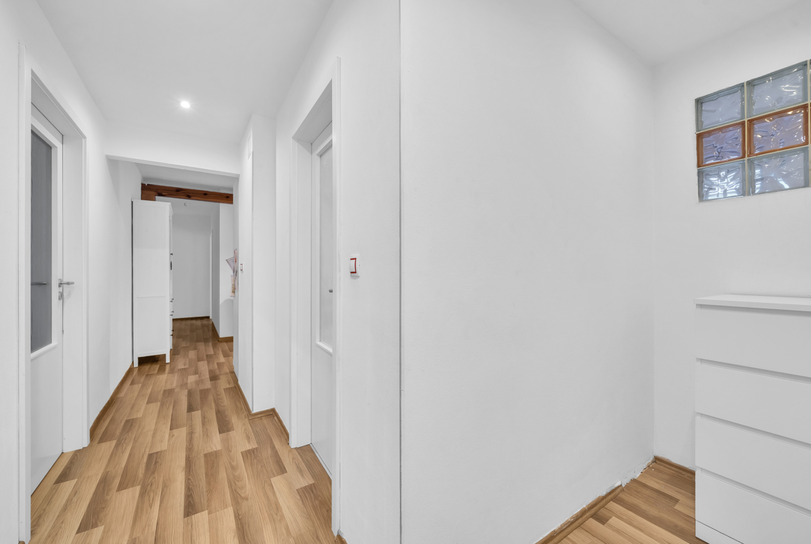 Byt prošel kompletní rekonstrukcí v roce 2013 – nové rozvody elektřiny, podlahy i koupelna. Okna jsou plastová v celém domě. Dispozice je praktická a zároveň flexibilní. Třetí pokoj byl vybudován v roce 2021 ze sádrokartonu a lze jej bez větších zásahů odstranit, pokud by někdo preferoval vzdušnější dispozici.