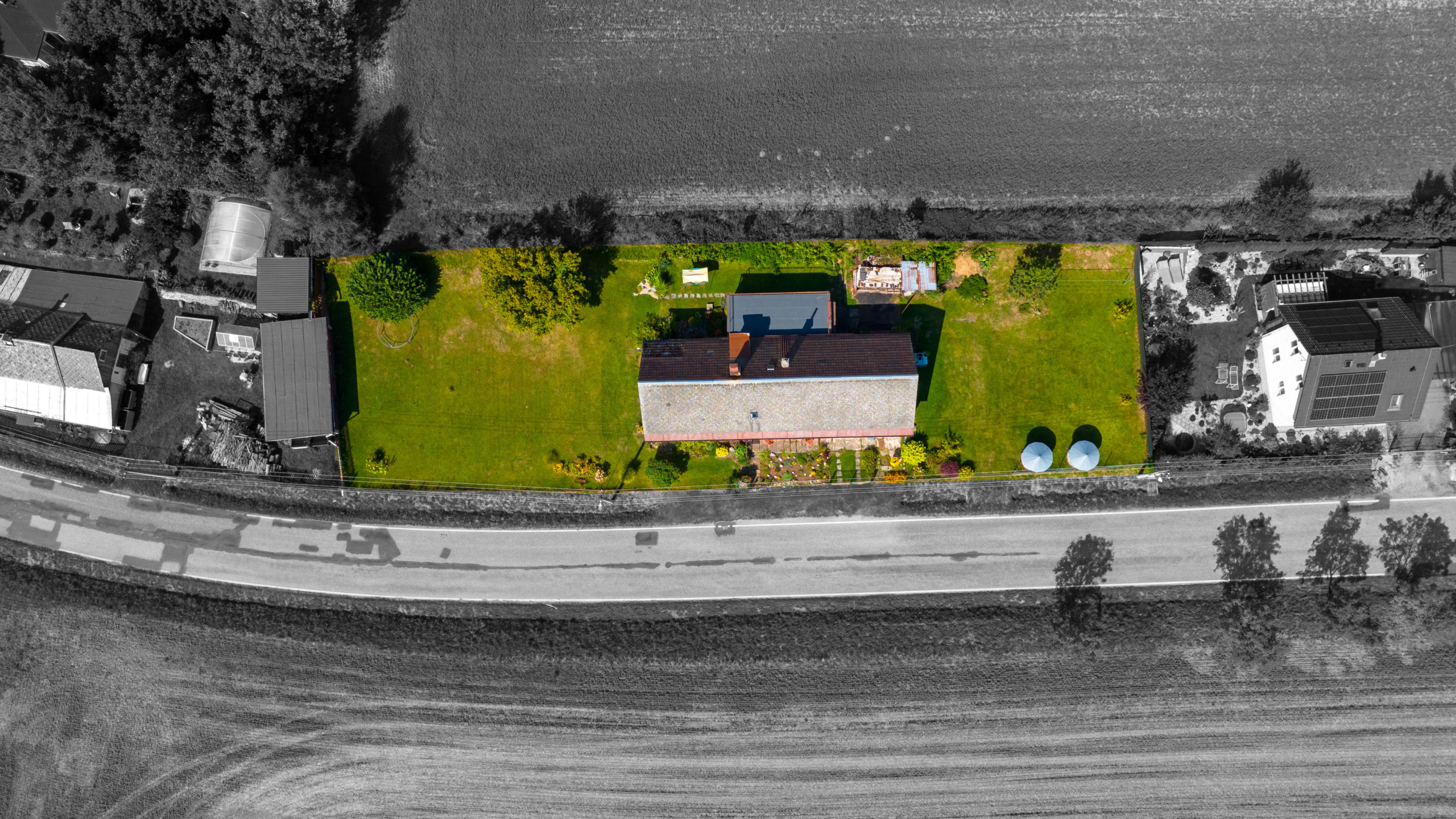 Nachází se zde vzrostlé stromy, okrasné dřeviny a také dva dřevníky vhodné pro uskladnění dřeva.
