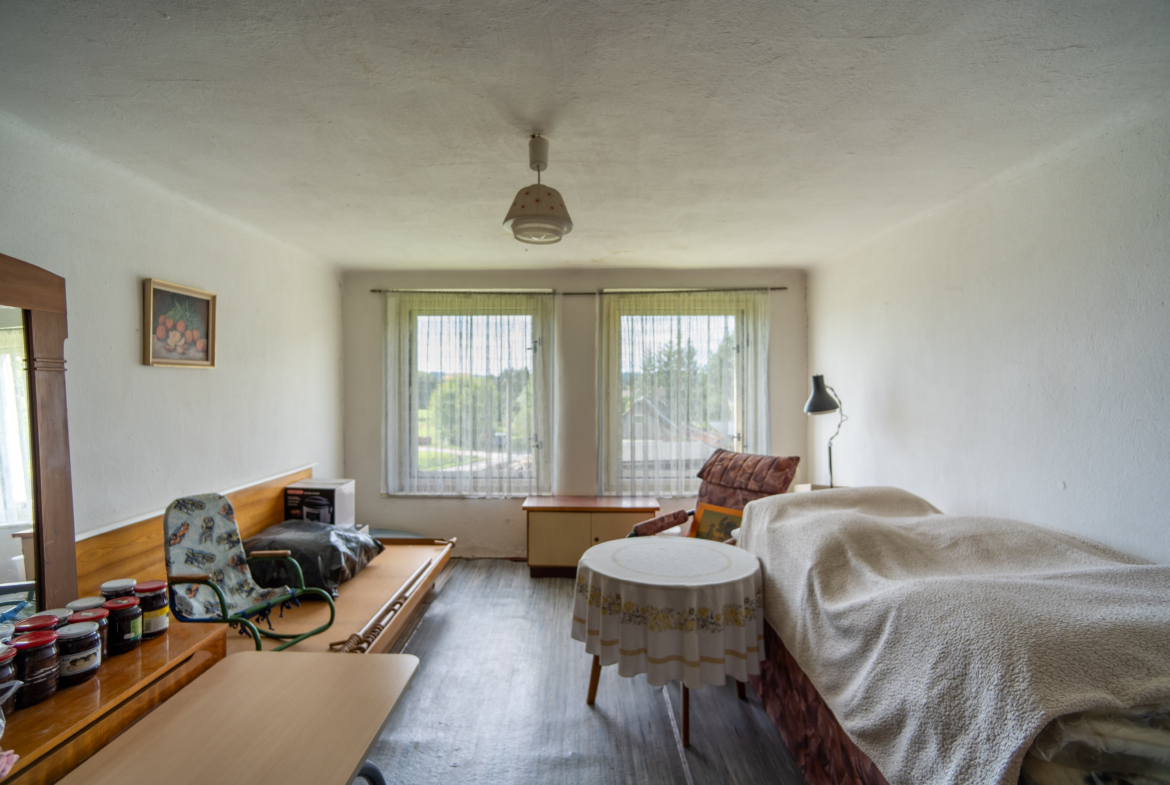 Dům by bylo ideální zrekonstruovat a z půdních prostor vybudovat další obytné místnosti.