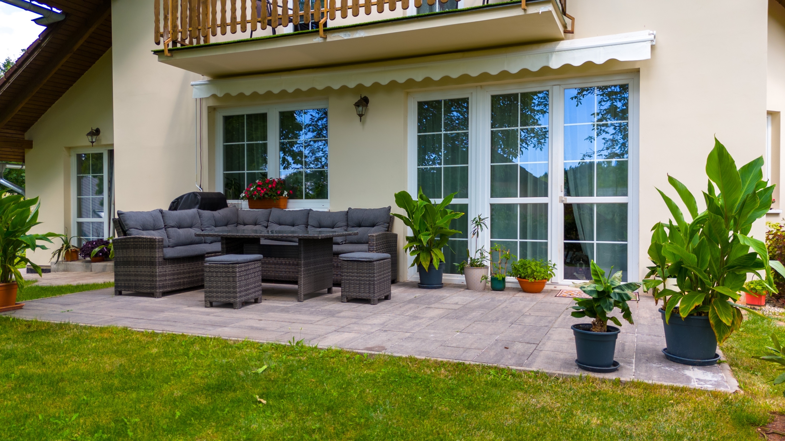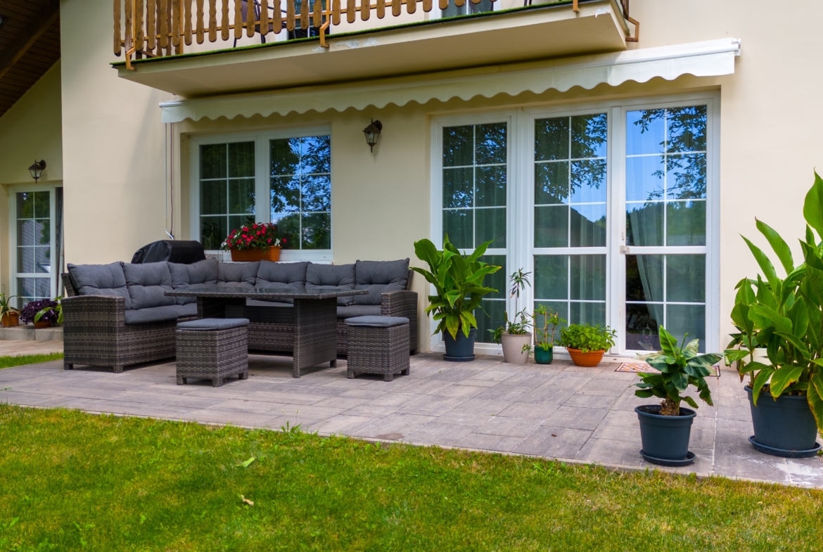 Pozemek je kompletně oplocený, vstup zajišťuje elektrická pojezdová brána na dálkové ovládání. Zahrada je osazena habry, které poskytují soukromí a estetický dojem. V zadní části rostou dva vzrostlé ořechy a třešeň. Na domě je nainstalovaná markýza, pod kterou vzniklo příjemné posezení ideální k odpočinku i letnímu grilování.